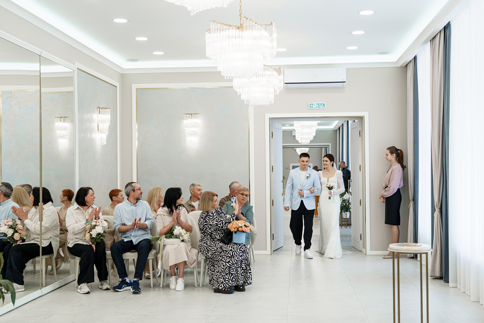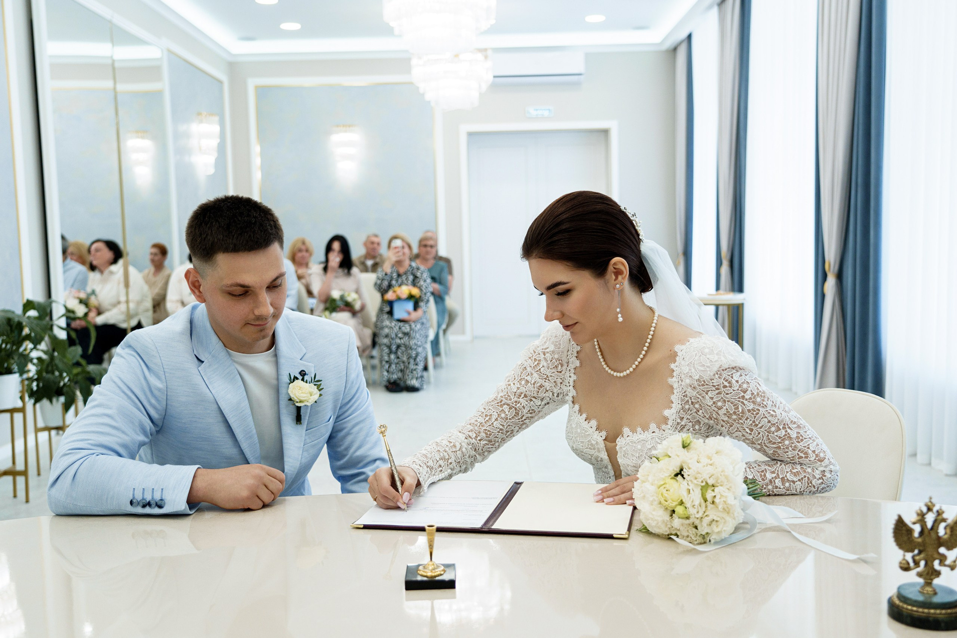 Интерьер ЗАГСа впечатляет своей элегантностью и утонченностью. Светлые тона, изысканные декоративные элементы и современное оформление создают идеальную атмосферу для самого важного дня в жизни молодоженов.